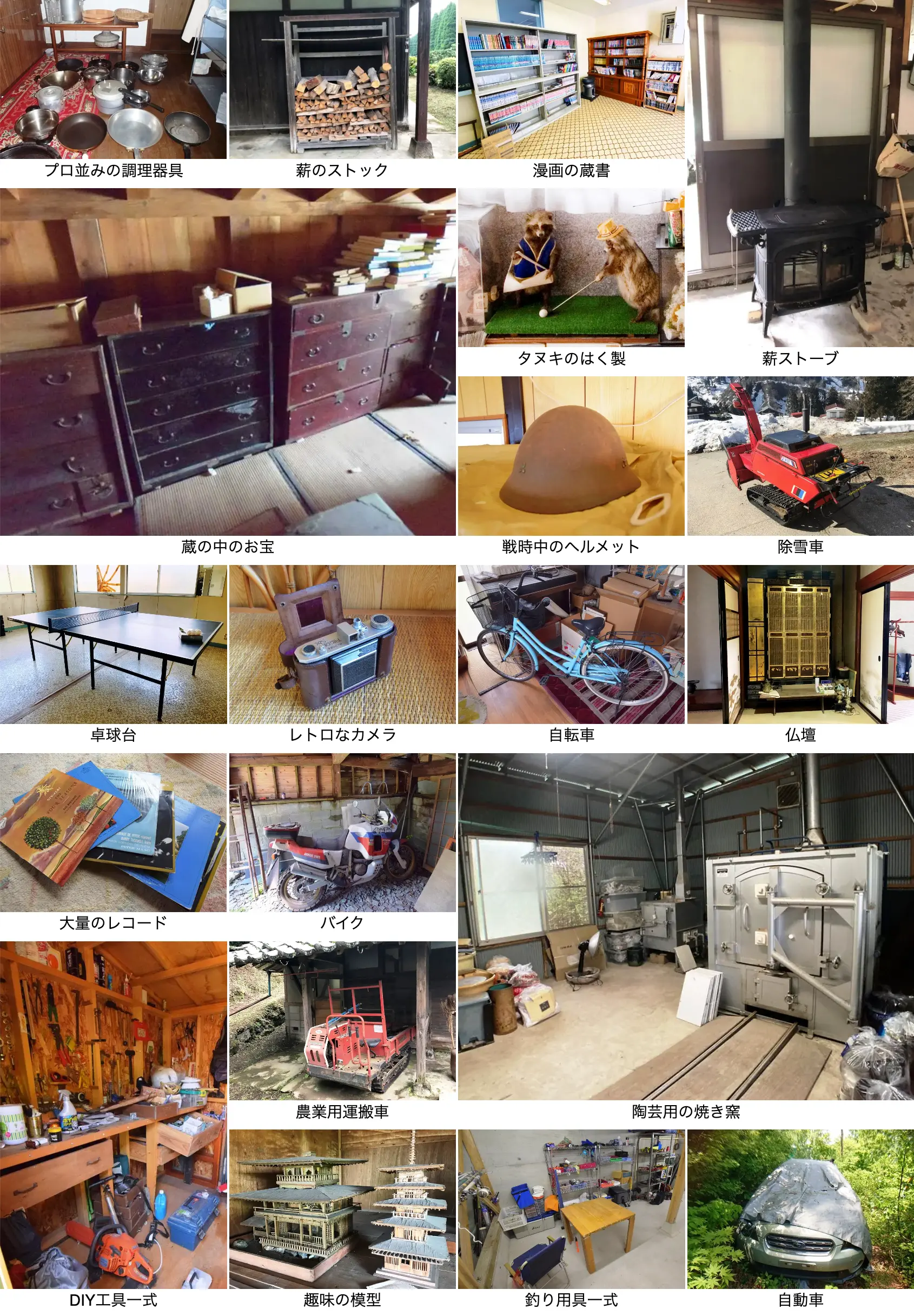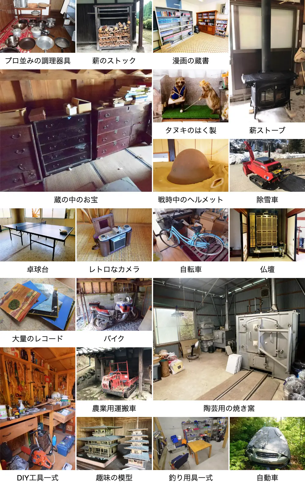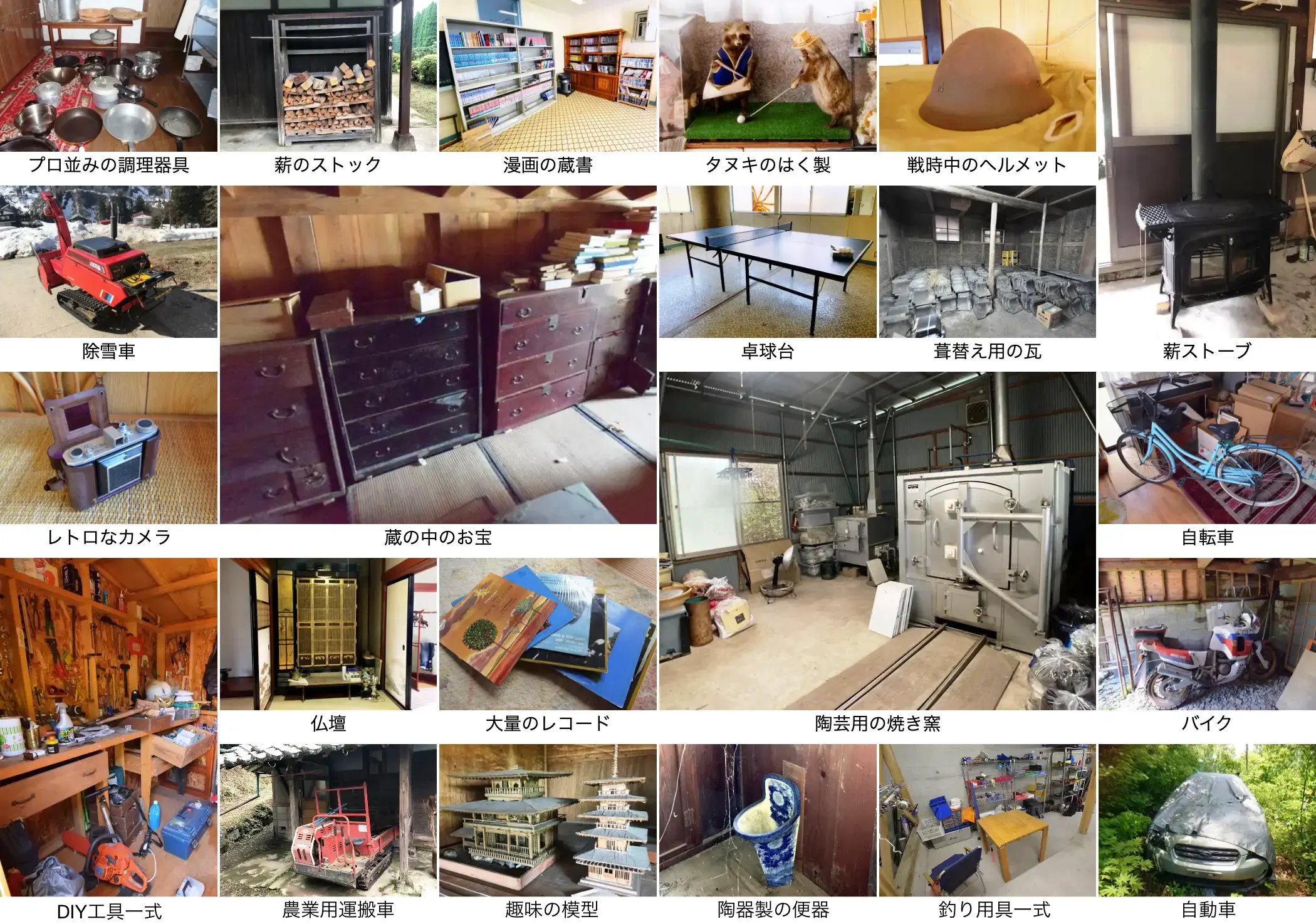 空き家にたくさんの荷物が残ったままのことも多いです。そして、それをほとんどそのまま譲り受ける買主さんもまた多いのです。確かに新品ではないですが、食器や調理道具、冷蔵庫や洗濯機などの家電製品がそのまま使えるのは、ありがたいです。これらの「残置物」は、通常は売却前にすべて処分することが常識と言われていましたが、家いちばならではの「直接商談」によって、残すほうが当たり前となっています。中には蔵や倉庫にお宝が眠っているケースもあり、「宝さがし」もひとつの楽しみにすらなっています。
