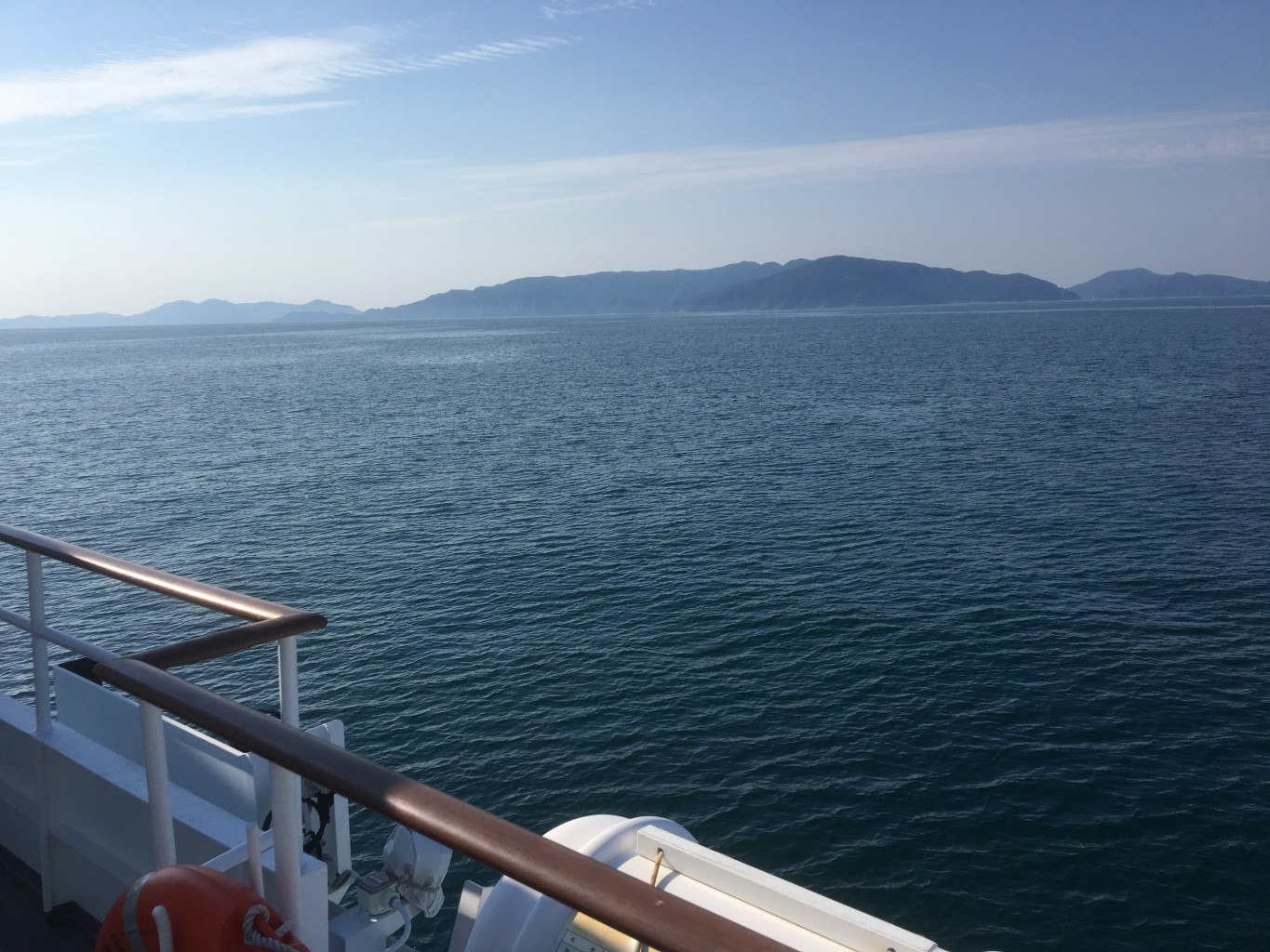 仕事で甑島に行くことになり、それまでも数多くの田舎に足を運ぶ機会はあったのですが、船で行くような離島は初めてでした。薩摩川内からフェリーで1時間半の船旅となり、正直不安しかありませんでした。事前情報としてその島が「Dr.コトー」のロケ地だということくらいでしたが、なおさら不安になりました。要するに、僻地を絵にかいたような場所ということ。僕は、昔の薩摩藩の時代から小舟で統治してきたことを思い出し励ますことにしました。ところが、フェリーが思いのほか最新式に見え、すっかり安心して甲板からの眺めを楽しみ、幸いに波はきわめて穏やかな日で、イルカの群れに遭遇し、そして時間が止まったような水面の「凪」も見て、神秘的な思いでした。