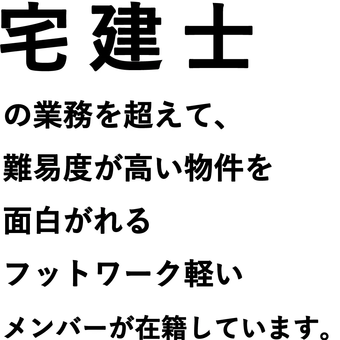 難易度の高い物件を迅速に調査し、問題を売主さん、買主さんへ分かりやすく正確に説明する論理的思考やコミュニケーション能力が重視されます。